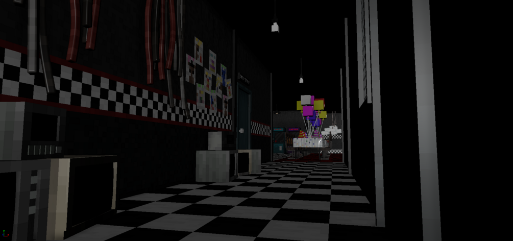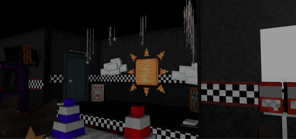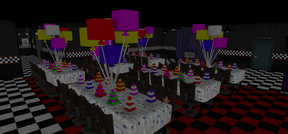 A Five Night's at Freddy's 1 Map in the style of FNAF Help Wanted in a blocky style.